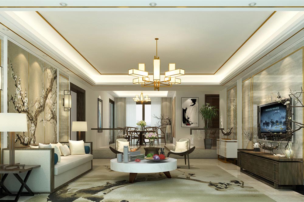 新中式風格是富含千年底蘊的東方中式風格與摩登時尚的現代風格彼此相遇結合,其精華之處在于以“一器一物皆是景,細微之處有乾坤”的古意為出發點,追隨時代的潮流,功能空間相互滲透,色彩空間相互碰撞,消除了傳統中式風格的沉悶和厚重,力圖在惹人癡迷的現代輕奢簡約中彰顯出傳統中式意蘊的雅致逸趣。